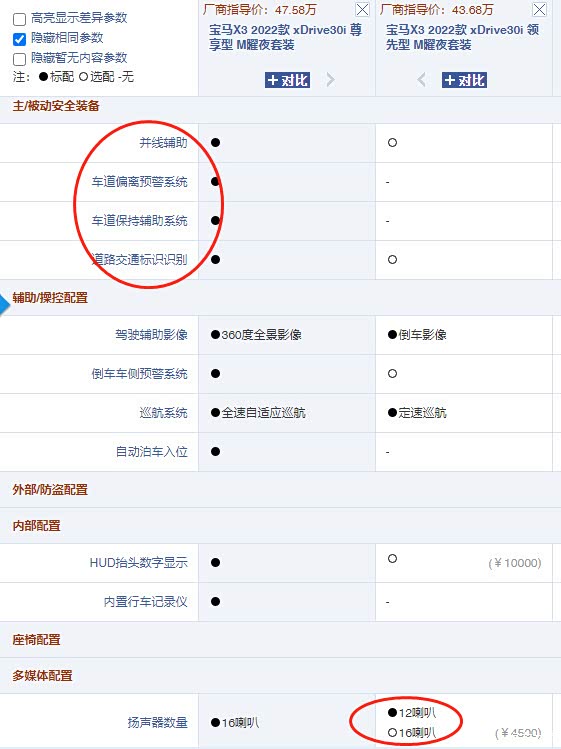 一张图说明2022款X3 两个30I的配置差异