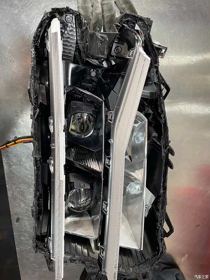 ①首先就是灯的造型独特美观,带来的负面影响就是拆得费劲,师傅要特别注意一下灯尾部分叉那里凹进去的那一块黑色塑料。小心些,别大力出奇迹搞坏了;