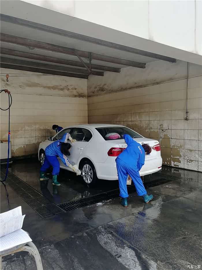 师傅说洗车不?我说洗,洗洗更健康!完美进入洗车间,等待旁边洗车大姐们准备给朗逸洗澡。
