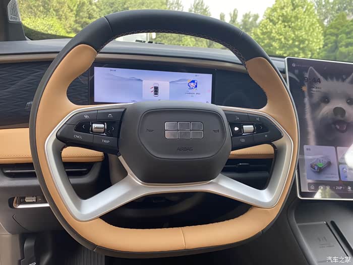 内饰还是挺精致的,我选择的是棕色的内饰,中控屏和副驾驶的显示屏,都挺大的,而且操作起来也很顺畅,灵敏。但是仪表盘的显示屏感觉有点小,虽然不影响观察数值,但是感觉有点小气。这个怀档的设计,是用起来还是不错的,就是感觉有些不适应,右手往往会往扶手台的地方摸索。副驾驶没有了手套箱,感觉车内的小型储物空间有点少,而且扶手箱的空间也不大。这叫舍弃了储物空间,得到了副驾驶空间,对于副驾驶的乘客比较友好。