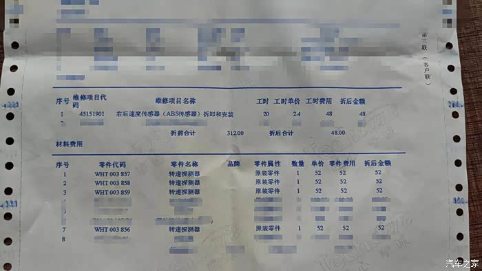 更换之前请教过一些车友,说是更换轮速传感器不便宜,一只就得两三百元。