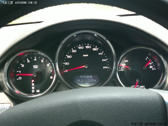 三幅炮筒式仪表,彰显运动风范,一半高速一半市区,没有刻意节油驾驶,总觉得买个大排量轿跑何必省那几升油而省略操控快感,该快则快,想加速就加速,14升的百公里油耗相对3.6的排量完全可以接受。