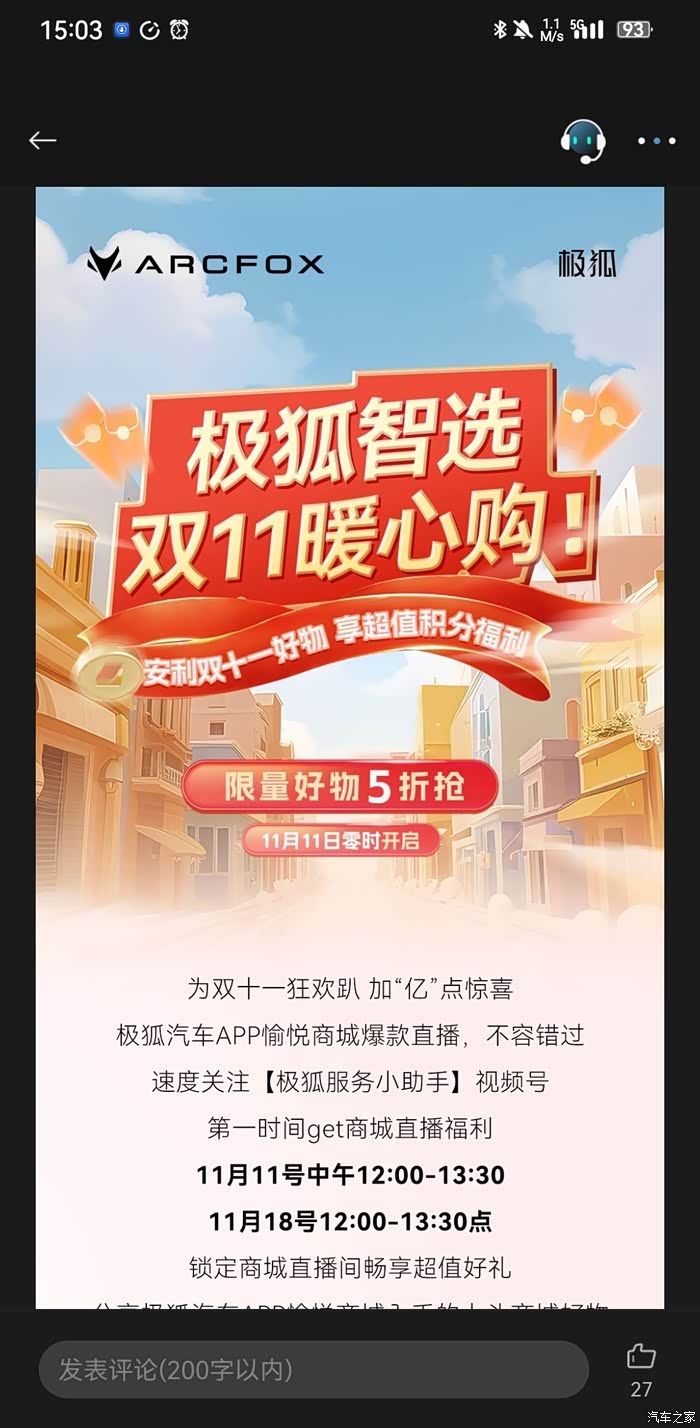 极狐汽车APP愉悦商城直播的商城好物,双11的温暖礼物