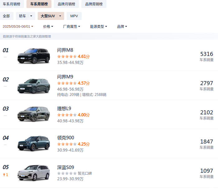 深蓝S09的周销量出来了。5月26-6月1号这一周交付1097台,大家怎么看呢?这个销量不知道有没有达到深蓝厂家的预期。