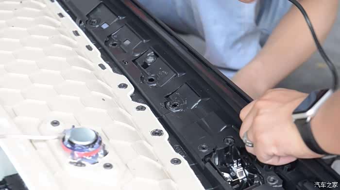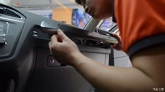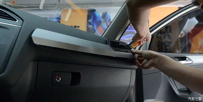 来看一下副驾驶这一条,是卡扣结构,所以拆装就简单,翘起来,卡紧。