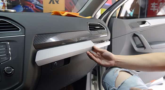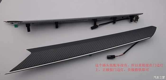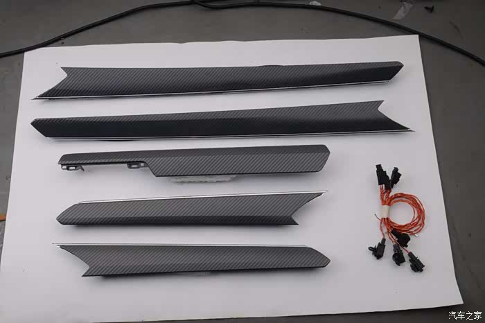 接来下进入细节!一共是有5片要换的东西,一条是前中控副驾驶那里的,这里只是装饰,不带灯。基于的四门是带LED灯