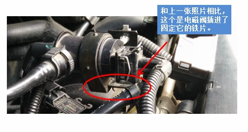 空气流量传感器就在空气滤清器的盒子的出口上。