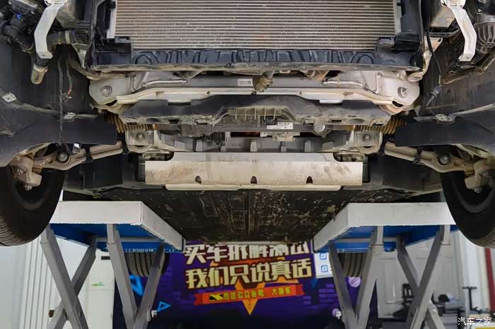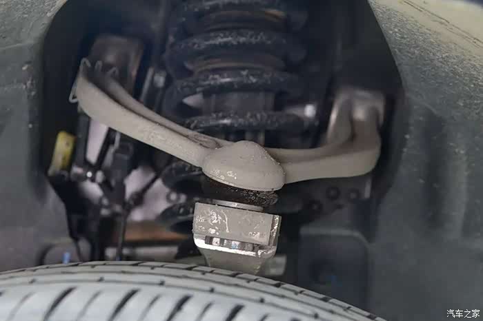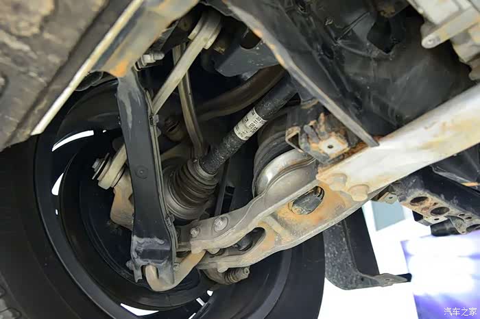 后副车架同样也是全框式结构,但并不是铝合金材质,而是由多根钢管焊接而成,下方增加了一根铝合金加强梁。