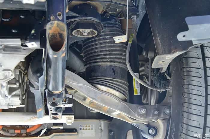 后悬使用了空气悬架,采用气包和避震器分离的设计,比一体式的更换成本要低得多,出现故障可以分别更换。