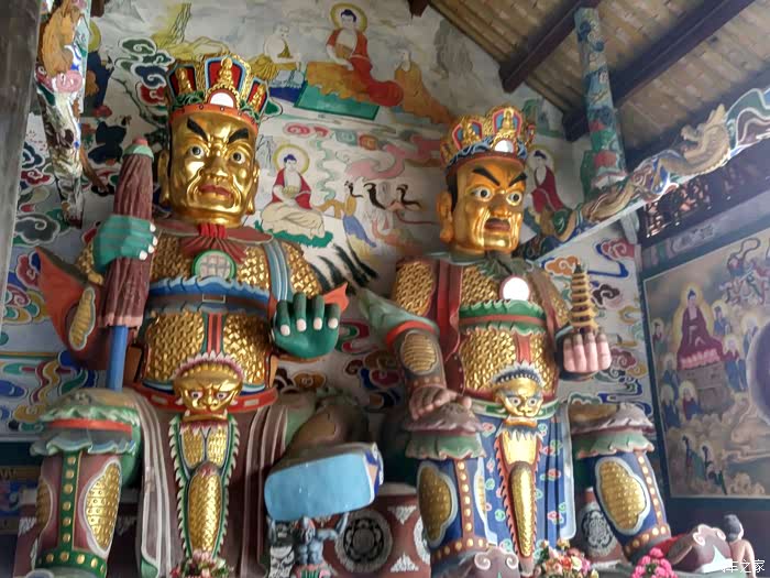 山门里面安置着新修彩塑的“四大天王”,个个都威风八面的。