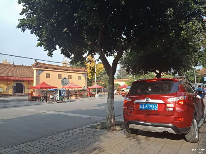 我们开车来到罗汉寺门口,这里是一条公路,先找找停车的地方。