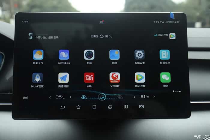 DiLink车机大屏操作起来非常流畅,显示效果也十分细腻,系统是联网运行的,OTA升级和安装各种软件都非常方便,多媒体、导航和空调等各种各样的功能都可以语音控制。