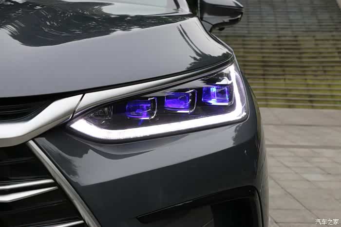 唐DM-i的外形确实很好看,走的是大气沉稳的路线,龙颜大嘴格栅和LED矩阵大灯的观感很出色。