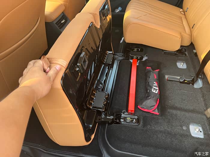 从这个角度看放倒后排座椅之后整个后备箱相当的宽敞了,弄一个大的软的垫子在加上枕头被子啥的就是一个小型房车了有没有,开出去旅行啥的孩子困了累了躺下就睡很方便