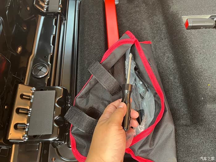 有的车主还不知道的是这里还有个暗格,打开之后有两个单独的工具