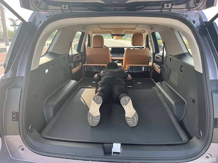 给大家展示一下空间到底有多宽敞就拿我个人为例吧,一七五左右的身高150的体重趴在上面也只占用三分之一,也就是说一家三口躺在上面刚刚好,出去旅行直接睡车里也可以,大型车还是有大型车的优势就比如这一点,而且自己开车会比较自由想走就走想停就停