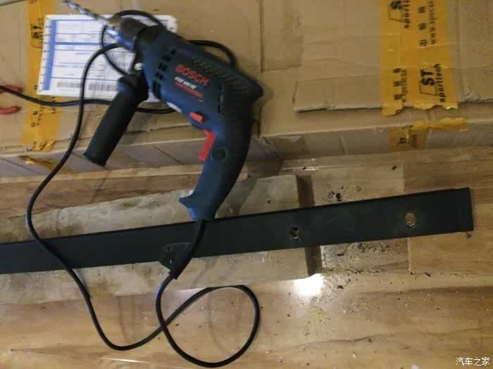 车开不到楼上去,只能拿着胶条回家开孔,这是整个安装行李架作业的重头戏。当年装修房子时买的小手电钻又派上用场了。