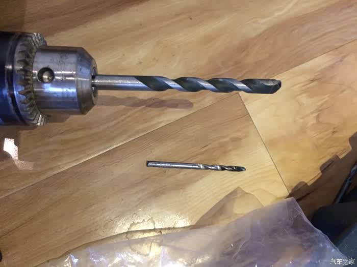 小钻头开孔,大钻头扩孔。不钻不知道,一钻吓一跳。原车所谓“胶条”哪是什么胶条啊,是铁皮上面刷了层黑胶,非常结实,开孔的时候电钻轰鸣,震耳欲聋(媳妇在隔屋学习,竟然什么都没说)。