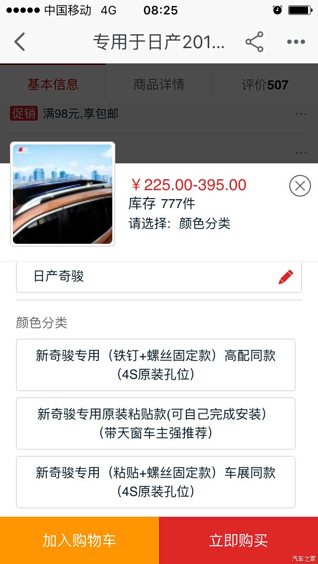 车停在单位门口,一同事看见了,恭维祝贺,然后端详了一下说“感觉缺点什么,哦对,缺行李架,越野车不装行李架,光秃秃的不好看。”说者无心听者有意,不好看那就装一个呗,多大个事。于是马云家搜索,论坛上看帖。行李架跟踏板都是同一家店买的,价格合适,质量很好。跟2.5车型对照了,貌似一样一样的。