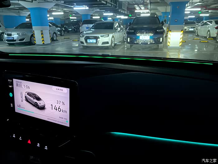 最后我想跟大家分享一下关于充电的体验,上汽大众的充电柱有一个蓝牙模块,这个模块是插在ID.3车内的,车内也预留了相应的插口,有了这个模块,上汽大众充电柱可以实现直插充电,连接充电柱不必再使用授权卡授权,如果想停止充电,拿下充电插头,那就需要车辆解锁了,要不然是拔不掉的。