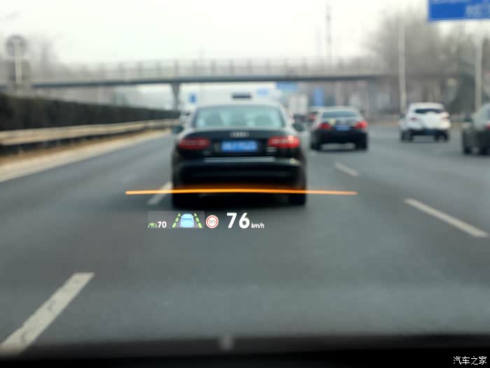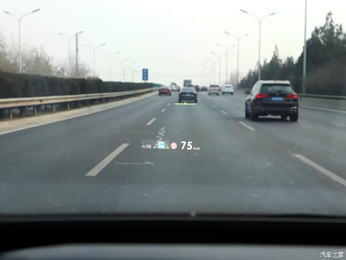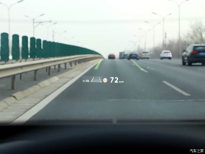 导航的时候需要转弯或者出口驶出,增强现实抬头显示系统有动态的箭头在相应的道路方位动态提醒转弯或者驶出,有了这套辅助系统,真的可以避免错过路口,我们在一些小视频或者新闻上见过很多交通事故,是因为驾驶员到了出口附近才发现该驶出了,突然并线,引发追尾等交通事故,为什么会发生这种事?我相信这些驾驶员不是故意的。只是获取的信息不及时,影响了正确的判断。还有当前车与我们的车辆距离发生变化的时候,增强现实抬头显示系统会在前车的车尾显现一条绿色的横线,高速驾驶时,这个时候的车距是安全的。