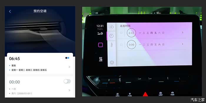 空调预约可以在手机上通过上汽大众超级APP设置,也可以通过车机系统完成设置。