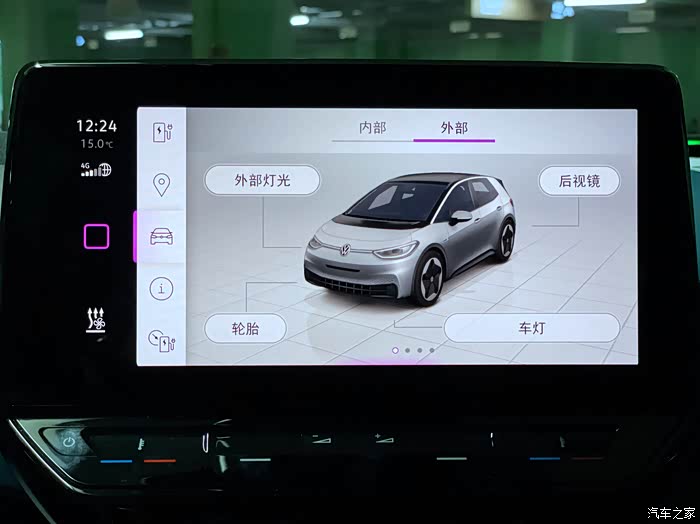 车辆设置菜单下分为车辆内部和外部设置,外部设置有外部灯光、车灯等,内部设置有极智灯光等,通过选择具体某一项功能进行个性化的设置。