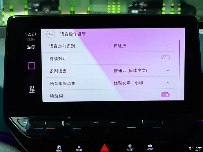 语音操作设置支持唤醒词的自定义,比如默认的唤醒词是“你好,大众”,用户可以按照自己的习惯自定义,比如我家的猫咪叫“咪仔”,我将唤醒词设置为“你好,咪仔”,日常使用中直呼“你好,咪仔,打开空调”、“你好,咪仔,导航回家”。