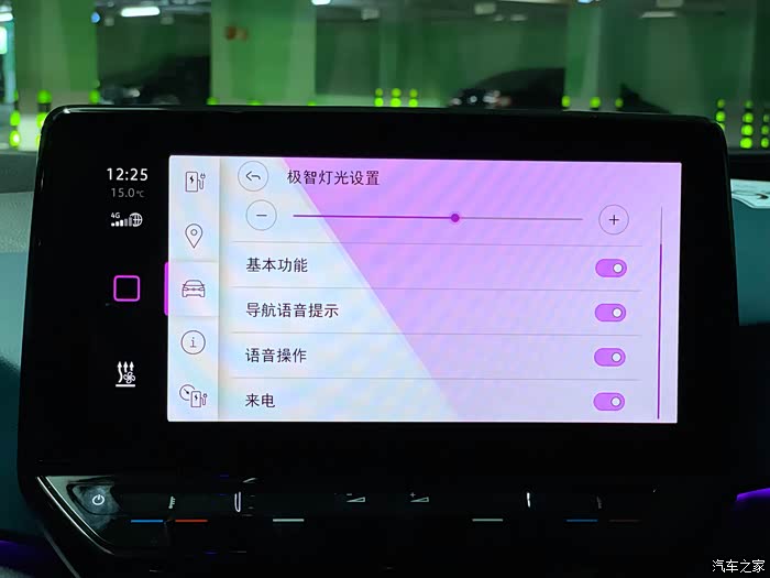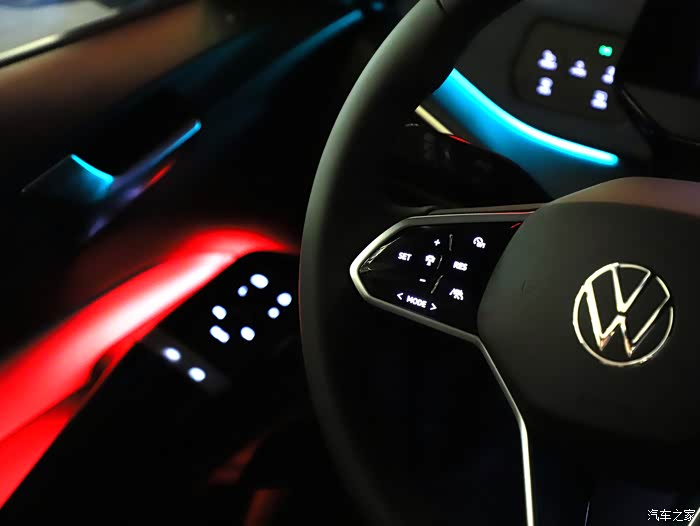 ID.3氛围灯包括中控台和主副驾驶车门内侧把手处不同位置都有,而且支持预设的不同模式切换,也可以自定义色彩,氛围灯是营造高级感的加分项,这个功能几乎无人能抗拒。