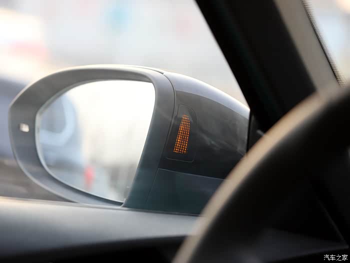 外后视镜采用黑色的外壳,与车身颜色区分,营造出一种年轻动感的视觉效果,ID.3的外后视镜集成了多项功能,首先是迎宾照地灯,在地下停车场或者夜间,迎宾灯非常有仪式感,其次是盲区监测提示,在后视镜的内侧有黄色的警示灯,当有其他车辆从两侧靠近我们的时候,相应车侧的外后视镜黄色警示灯会发光提示,很大程度可以避免视野盲区发生的并线刮蹭事故。