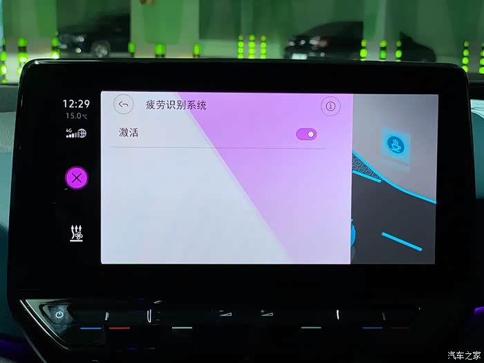 通过几天的驾驶体验,如果车辆在行驶过程中多次偏离车道被车道偏离功能纠正回来,车机系统会激活疲劳驾驶提醒。