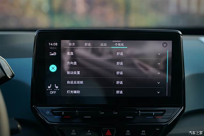 ID.3有四种驾驶模式的选择,常规情况下肯定是舒适模式,这个模式下转向的手感以及加速踏板都比较随和,如果切换至运动模式,转向手感会加重,加速会更灵敏。
