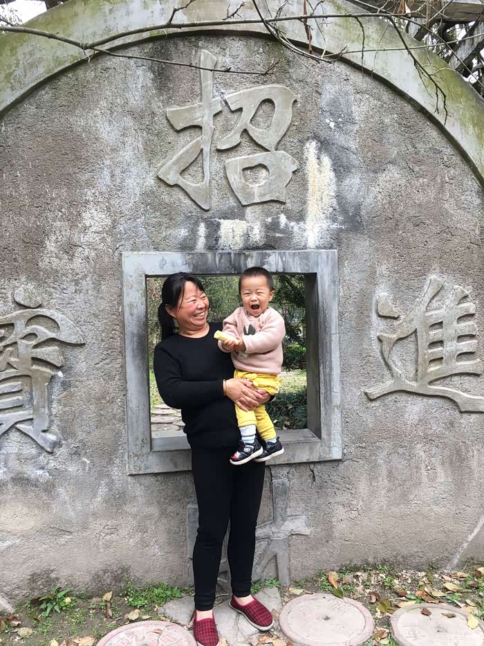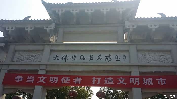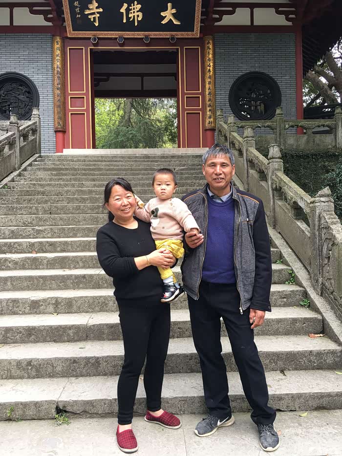 游览完大佛寺,出门的时候给儿子拍照