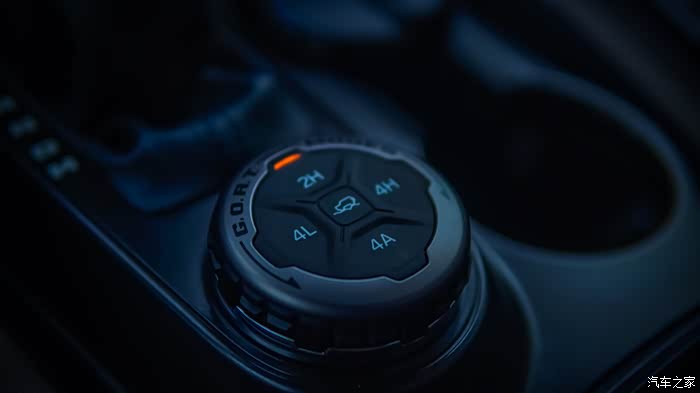 而在硬件方面,能看到的地方,有专业的32寸全地形轮胎,分时四驱系统,最低可放大3.06倍扭矩。
