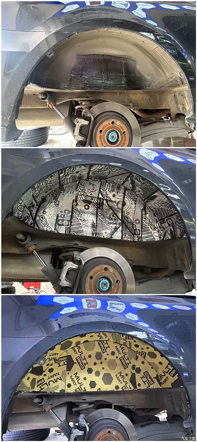 轮弧内衬板使用战斧止震板进行隔音处理