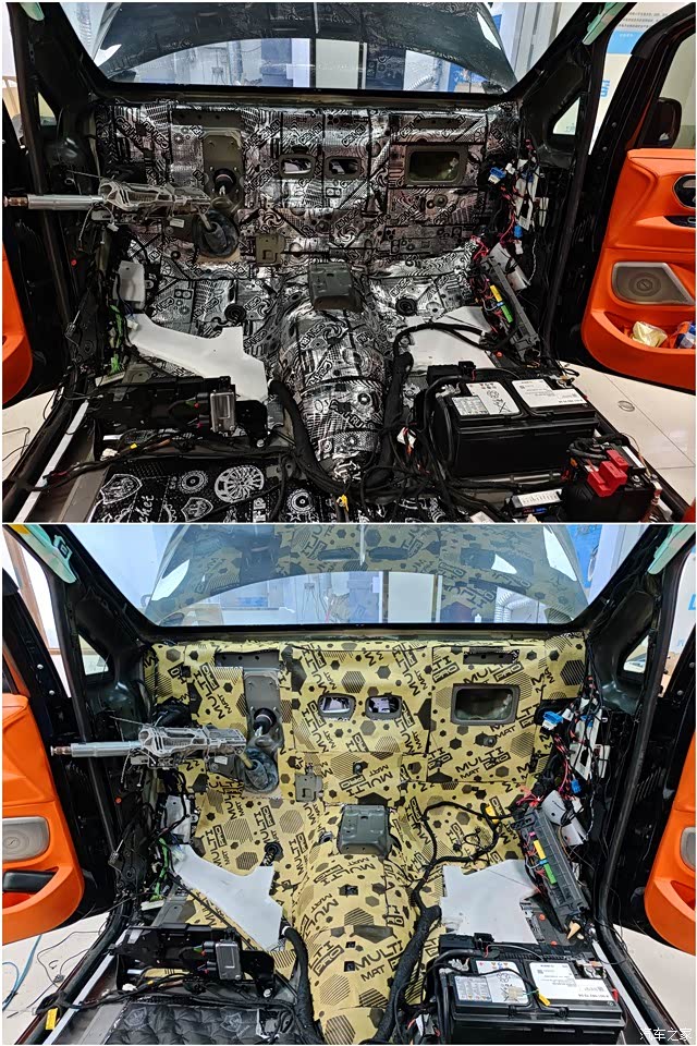 前后轮是整车噪音“重灾区”,路面粗糙、砂石弹击、胎噪等都通过轮弧传入驾驶舱。使用STP小炸弹止震板、CTK声学汉堡吸音棉、战斧止震板进行三层隔音处理,明显减弱驾驶途中轮胎摩擦声,尤其在柏油或水泥路上行驶时更显安静!威霆后备箱面积大,钣金结构宽,容易在行驶过程中发生共振回响,导致低频轰鸣和共振感,尤其对音响低音输出造成干扰。为此,我们大面积粘贴一层炸弹止震材料,阻断低频共振!