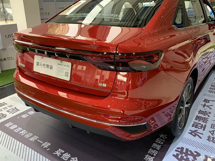 全新四代帝豪前脸设计得这么大气,尾部自然不能逊色,否则会有种虎头蛇尾的感觉。新车尾部最大的改变来自于贯穿式尾灯设计,带有“GEELY”英文标识的熏黑的饰条与其融为一体,有一种“灯厂”的大气与科技感。