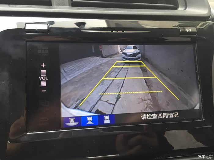 858的16款飞度提了半个月了,郑州广本优惠4000送20次保养。没有倒车影像老婆开着不放心,改装凌派屏的念头就越来越强烈。在网上找了很久,对比各款倒车摄像头后决定买原装拆车三模,最主要原因是拍摄角度大,能看见后保险杠和左右障碍物(见图)。最后分批购买,凌派屏429,面板协议线252,原装三模倒车摄像头318,含邮费共999元。寄到手后趁假期练练手,开装。