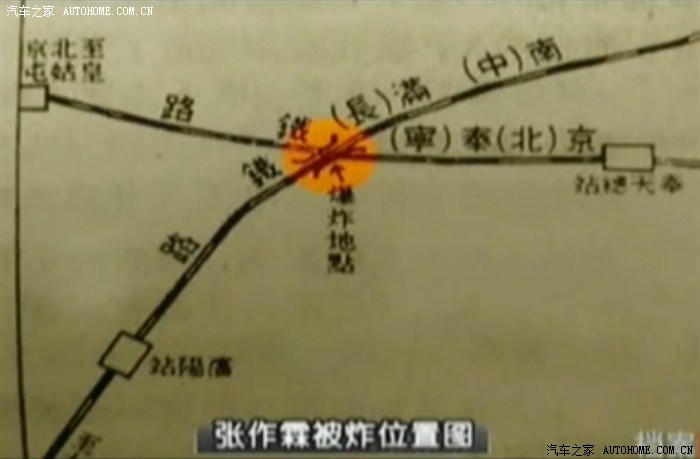 30麻袋的炸药从相对脆弱的列车顶部朝列车里面爆炸,张作霖乘坐的第八节车厢只剩下一个底盘,张作霖被炸出