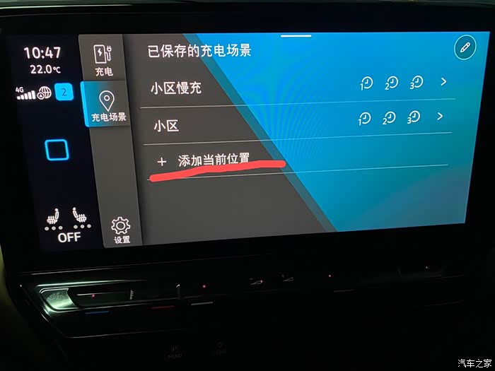 充电场景实质上建立了一个地理位置,如果下次你换另外一个地方充电,如果要使用预约充电,你会发现之前建立的充电场景出不来,我第一次也懵了,后面研究发现是因为换地方之前设置的地点定位找不到了,所以这时需要你在车机上重新建立一个充电场景(充电地点地位),熟练后也就几秒钟搞定