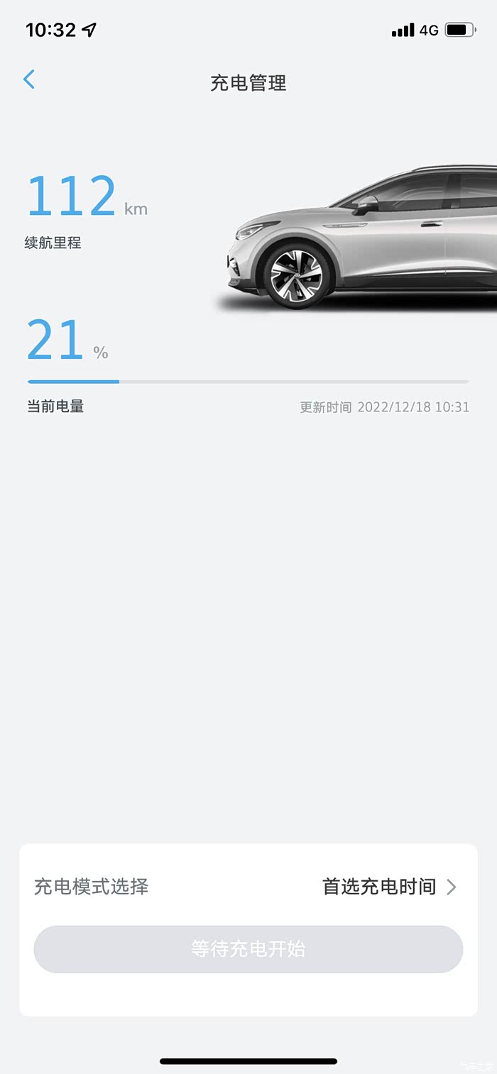 在车机充电界面,有两个模式可以选择,即立即充电和首选充电时间,此时我们选择首选充电时间就设置好了预约充电,下车按照正常的充电步骤操作即可,打开充电接口、拔枪、插枪、手机扫码选择充电桩、点击开始充电、充电灯亮起,此时可以放心离开,在大众APP上面可以看到已经选择首选充电时间。大概等几分钟左右就可以在充电桩APP上看到已停止充电了,车子会在设置好的充电开始时间才继续开始充电!