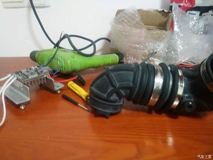 原装的进气管不用了,另外买了一段70内径400长的进气管,外加一个70/60的变径接头。驱动板也用上了盒装的,接线相对简单一些。