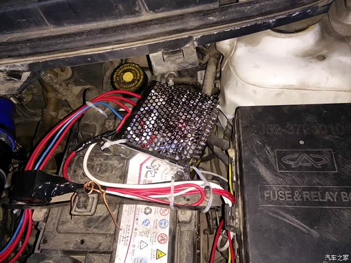 然后就是布线接线固定了,暂时没找到合适的继电器控制驱动板的电源,先直接从电瓶上取电吧。