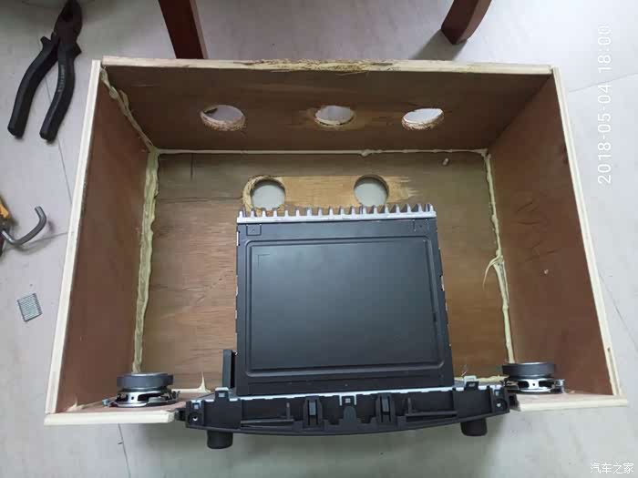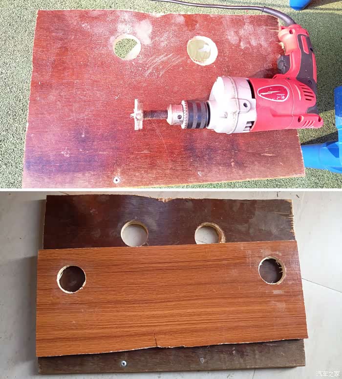 料下好后,开始做些加工工作。接着是给前面板的小喇叭开孔,还有就是给CD留散热孔。好在有工具,开孔工作轻松完成。