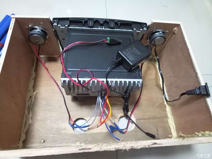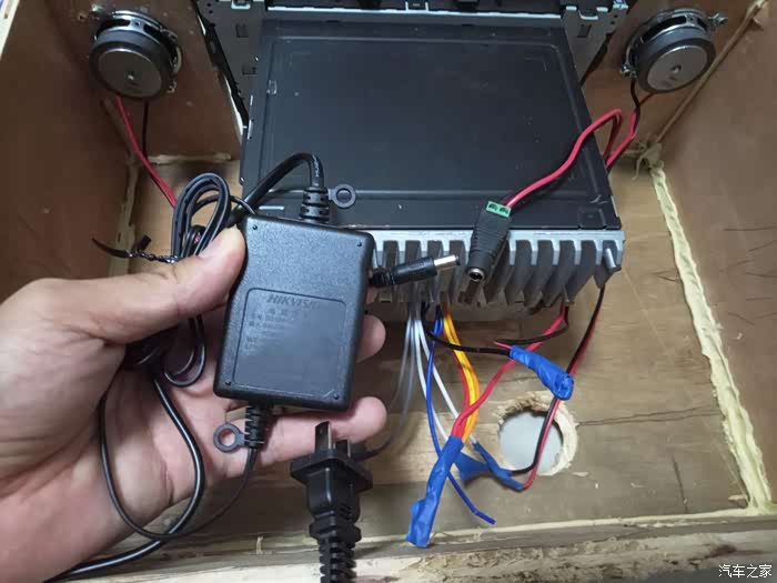 把喇叭电线接在尾线上。然后找了一个监控用的12V 2A的变压器,用来给CD机供电用。随便把尾线上的电源正负极接在一个监控用的小东西上,方便接变压器。