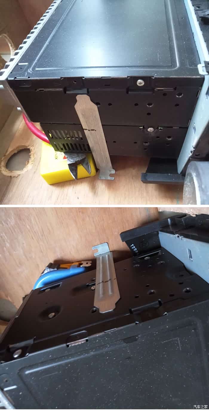 CD机用电脑机箱后挡板来固定。先比划好哪里需要打孔做个记号。