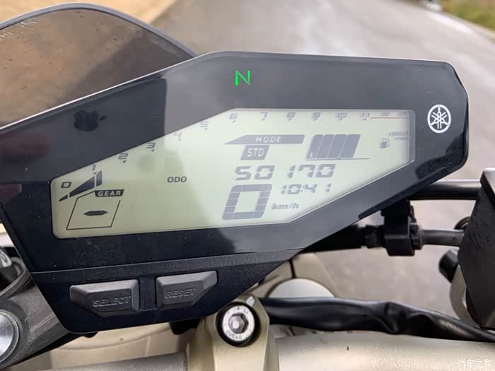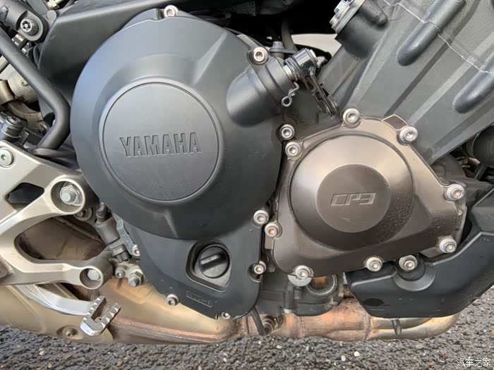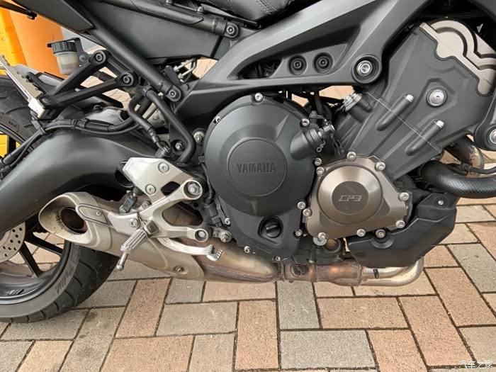 没错,MT09采用的是水冷三缸引擎,基本数据是N703型846cc4冲水冷DOHO4气门横置三缸,最大功率81kw/9000rpm,最大扭矩88Nm/8500rpm。虽然是大型二轮(日本分类,400cc以上的摩托需要增驾大型摩托驾驶证),可是车重只有差不多190公斤(比我400cc的西风X还轻!)