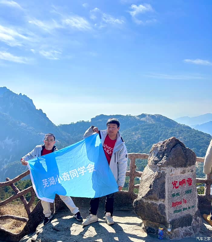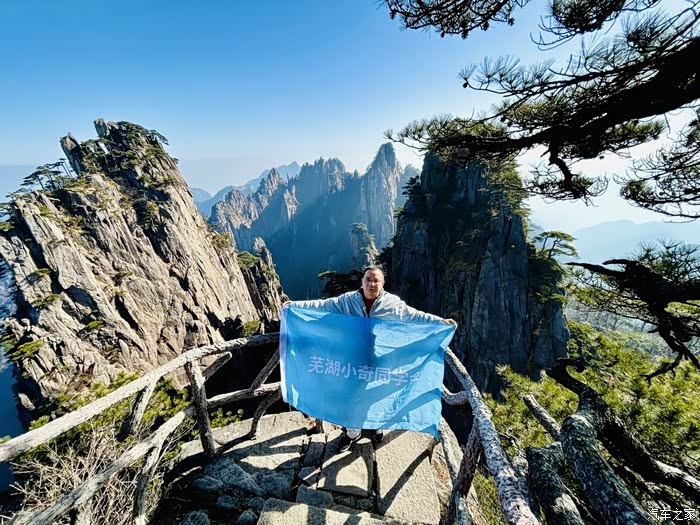 到了黄山必须要带上芜湖小奇同学会的会旗,来的时候天气太好,所以没有看到云山雾海确实有点小缺憾
