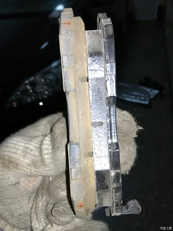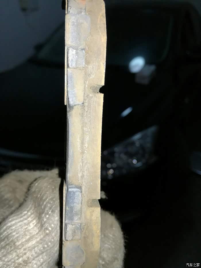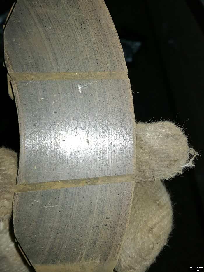 这是原装刹车片,磨损很平整,没有凹凸不平,所以刹车盘也是很平整。