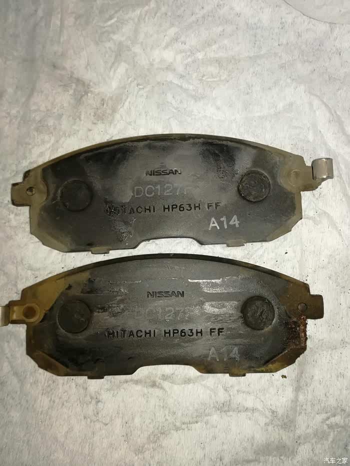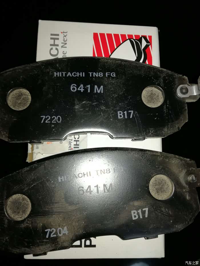 这是换下来的原装日立刹车片,顿时感觉原装的就是要比配套的好,看这些字都是钢印冲上去的,绝对是质量的保证。